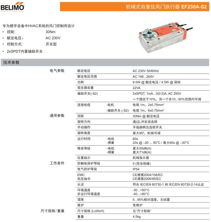 • EF230A機(jī)械式自復(fù)位風(fēng)門執(zhí)行器