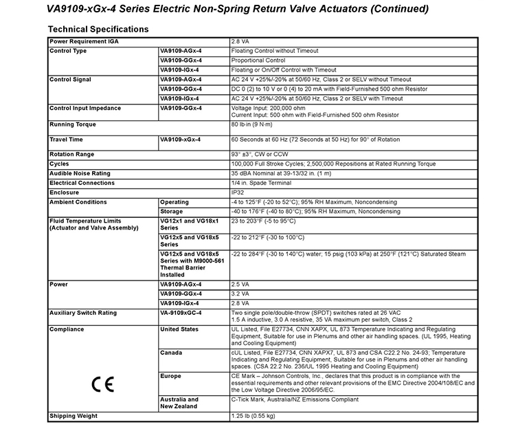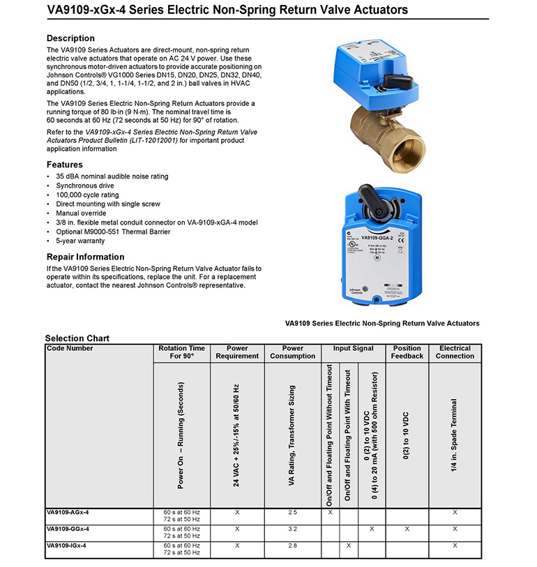 • VA9109球閥執(zhí)行器