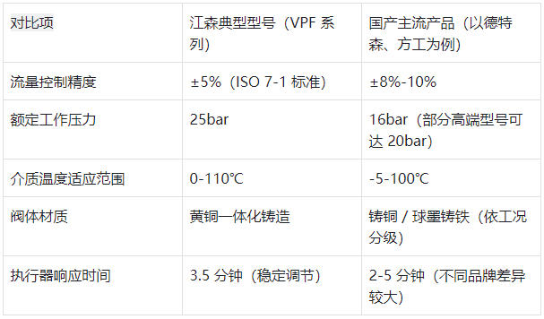 江森二通閥的核心優勢在于動態平衡與電動控制一體化。以VPF系列為例,其內置獨立平衡閥結構,能在20-200kPa壓差波動范圍內維持流量恒定,從根源解決暖通系統水力失調問題,尤其適配大型中央空調的變流量系統。這種 “抗干擾能力” 是國產多數基礎型號不具備的——國產閥更側重基礎通斷/調節功能,僅少數高端型號(如上品森超級雙相鋼系列)通過外置平衡組件實現類似效果,但系統集成度較低。​